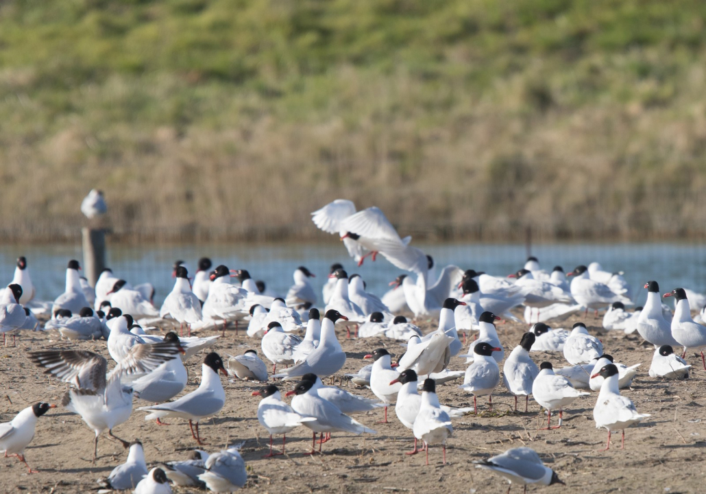 Eh oui les Mouettes mélanocéphales ont sûrement inventé l’Europe, Eramus, l’Unesco, l’ONU… bien avant d’ autres! Amis adhérents, visiteurs d’un jour, photographes et ornithologues, n’hésitez pas à observer ces étonnants oiseaux, à noter les bagues au poste 1 (les transmettre aux guides ou les envoyer directement à Camille Duponcheel (cduponcheel59@orange.fr), responsable national du programme national du baguage de la Mouette mélanocéphale. Vous regarderez alors un vrai individu, avec son histoire, ses comportements, sa vie qui lui est propre, et non plus une espèce. Mais cela ne l’oublions jamais, derrière nos jumelles ou notre objectif et nos discours, cela vaut pour tout être vivant unique et irremplaçable !