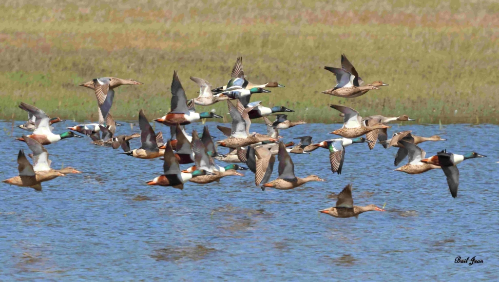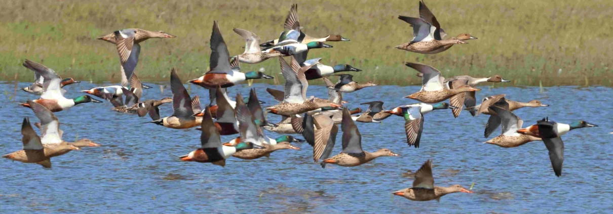 L’hiver est sans conteste la période des canards. Plusieurs centaines de Canards pilets, souchets, Sarcelles d’hiver… stationnent sur les prairies inondées des postes 7 à 10. Les plans d’eau plus profonds le long de la digue de front de mer accueillent les canards plongeurs comme les fuligules, harles et autres garrots…