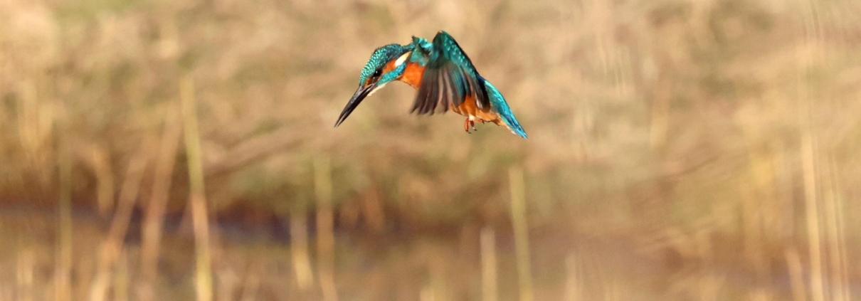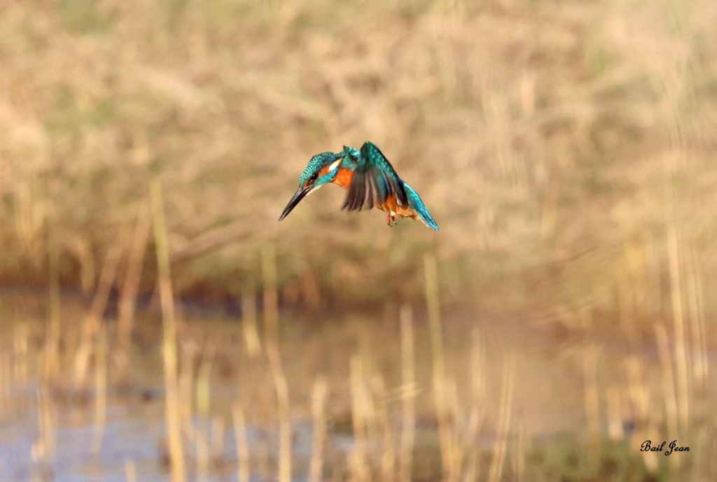 Et quand, notamment en hiver, rien n’est vraiment favorable, on utilise une autre technique : celle du vol sur place. Notre flèche bleue se transforme alors en colibri ou en Faucon crécerelle pour faire un “vol en Saint-Esprit” au milieu du plan d’eau tête, yeux et bec en poignard tourné vers le bas. La descente est rapide, mais le succès n’est pas toujours au rendez-vous par rapport à la pêche en poste fixe, plus précise et efficace, et surtout moins énergivore…