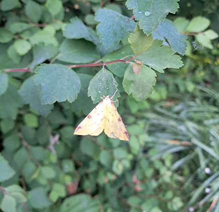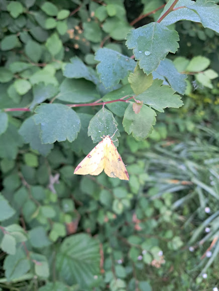 On a l’habitude de penser que les papillons nocturnes sont ternes, sans couleur dans leurs habits majoritairement gris, en un mot… moches. Les sphinx font souvent exception, mais pas qu’eux, loin de là ! La Citronnelle rouillée (Opisthograptis luteolata) de la familles Géométridae est ainsi d’une couleur générale jaune citron – même les pattes ! – lui donnant des allures de papillon diurne comme le Citron. Sur le bord antérieur des ailes, des taches rouille justifient son nom. Les Britanniques la nomment Brimstone moth, le papillon nocturne “couleur de soufre”.